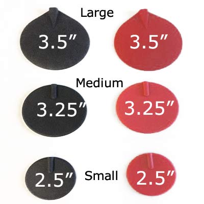 Black Large – 3.5", Red Large – 3.5", Black Medium – 3.25", Red Medium – 3.25", Black Small – 2.5", Red Small – 2.5"
